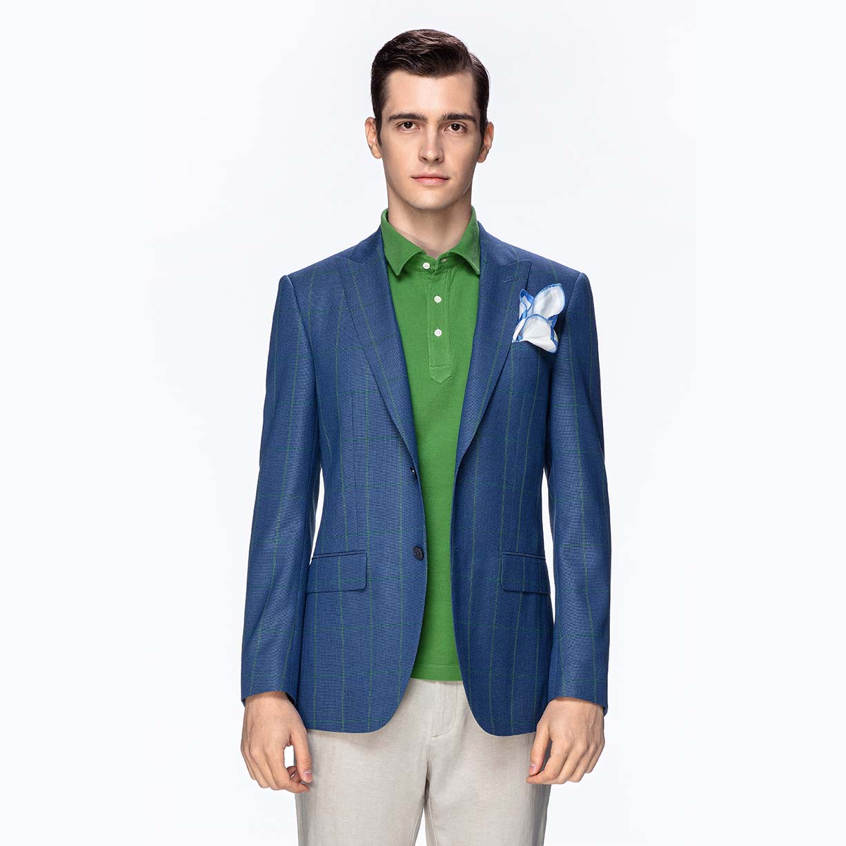 红领定制休闲西装方格子100%羊毛西服男上衣时尚外套夏季薄款西服